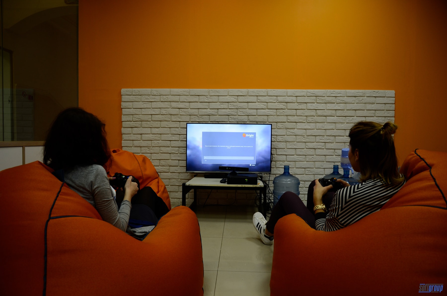 Ми розуміємо, що продуктивна та напружена робота є можливою лише за умови не менш продуктивного, гарного відпочинку. Тому SoftGroup створює дійсно комфортні умови для своїх співробітників — у наших офісах є все, що може знадобитися як для напруженої роботи, так і для відпочинку.